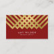 Seja ousado e saliente com este elegante cartão de visita vermelho com um falso design geométrico dourado. Esta na moda é excelente para Artistas Maquietados, Estilistas de Cabelos, Blogueiros de Beleza, Estilistas de Moda, Beauticistas, etc. É fácil personalizar; você pode substituir facilmente o texto do espaço reservado para adicionar suas próprias informações. Para obter mais opções, como alterar a fonte e seu tamanho, clique no botão "Personalizar". *Observe que a Marca d'água do Zazzle que aparece na visualização de zoom não aparecerá no produto impresso final. © Rosewood e Citrus