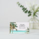 Faça uma impressão duradoura com este cartão de visita tropical! Apresentando uma vista de aquarela oceânica com palmeiras e uma praia, perfeita para viagem e planejadores.