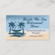 Esta cartão de visita de Retirada de na moda é decorada com palmeiras azuis e uma rede no fundo da praia arenosa com um céu azul e pássaros. Ideal para quaisquer empresas de centros de mais velho, tais como lares de enfermagem, lares residenciais, bem como instalações de enfermagem especializadas e residência assistida. Personalize-o com o nome comercial, o nome e os detalhes de contato e, em seguida, adicione os detalhes comerciais e os endereços da Internet no verso para personalizar. Faz uma cartão de visita para todos os empregados.