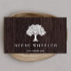 Ilustração artística e única do logotipo de árvore em fundo de grãos de madeira de bambu. Para obter materiais de marketing correspondentes adicionais, entre em contato comigo em maurareed.designs@gmail.com. Para obter mais logotipos pré-fabricados, visite logoevoluçao.co. Design original de Maura Reed.