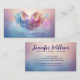 O cartão de visita apresenta uma ilustração lindamente serena de duas asas de anjo abraçando suavemente um coração, simbolizando a proteção e orientação fornecidas pelos nossos anjos da guarda.