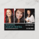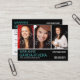 Faça uma impressão com três fotos em um conveniente cartão de visita de tamanho chubby. Seu nome se destaca em aqua brilhante contra um painel preto na frente e atrás. Perfeito para atores, modelos, cantores, dançarinos ou músicos. Adicione um resumo rápido do seu trabalho no reverso abaixo das informações de contato. Fácil e conveniente maneira de se fazer notar e de ir para a estória! Disponível com produtos correspondentes.