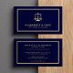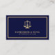 Lawyer legal conselor attorney at law firm elegant gold and navy blue business card with scales of justice logo, and simple modern minimalist typography. Suitable for a law firm, professional legal practitioner, judge, solicitor, or consultant.
