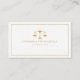 Straightforward, elegant minimalistic professional attorney at law business card design. Gold justice scale symbol with tin gold border frame over a customizable white background.