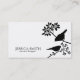 Cartões de visitas de na moda branco pretos com dois pássaros poleirados em uma árvore.