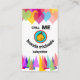 Design apresenta uma série de balões de coração coloridos flutuantes e chapéus de festa.Um rosto sorridente saúda o cliente. Os olhos piscando vão de para as legendas "chame" e "eu" com o nariz de um logo de bebê sorridente. O sorriso alegre é o seu nome prestigiado com o título de trabalho "babá" logo abaixo. Todos os comentários de legenda podem ser alterados de acordo com suas necessidades.