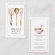 Elegant watercolor pastry chef business card featuring soft hand painted baking utensils, a spatula, spoon, and whisk on the front and a coordinating mixing bowl on the back, finished with a rose pink border and refined pink, black typography. Customize the business name, your name, title, phone, email, website, and location to create a polished card that feels artisanal and memorable for cake bakers, custom cookie sellers, dessert businesses, and small catering brands. A sweet professional touch for your shop, food fairs, pop ups, and events.