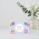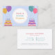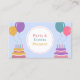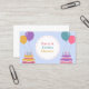 Um cartão de visita de organizador de festas e eventos decorado com bolos de aniversário e balões coloridos em tons alegres. Perfeito para cartões de convite ou para organizadores de festas como festas de aniversário para crianças ou adultos, lançamentos de produtos, chá de bebê, celebração familiar, aniversário de casamento, despedida de solteiro, festa temática, etc.