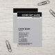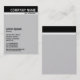Um modelo de cartão de negócios vertical com um conector preto coberto por uma banda branca. Todos os detalhes na frente com o vazio à esquerda, que pode ser deixado como está ou mais personalizado. A design permite também espaço de sobra para a adição de outros elementos, por exemplo, um logótipo.