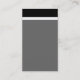 Um modelo de cartão de negócios vertical com um conector preto coberto por uma banda branca. Todos os detalhes na frente com o vazio à esquerda, que pode ser deixado como está ou mais personalizado. A design permite também espaço de sobra para a adição de outros elementos, por exemplo, um logótipo.