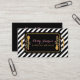 Trendy black and white diagonal stripes catering para caterária profissional, com uma bandeja chic preta e dourada, decorada com colheres de madeira decoradas com grampos florais cor-de-rosa. Personalize adicionando suas credenciais de serviço de nome e comida ao verso.