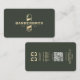 Procurando um cartão de visita personalizável para sua barbearia? O nosso design Verde Negro da Barber Dourada Barber é a adição perfeita ao seu estabelecimento! Apresenta um clássico design de polo barbeiro com olhos brilhantes que atraem clientes em um fundo de folha de ouro. A placa é totalmente personalizável, permitindo que você adicione seu próprio texto para promover seus serviços ou ofertas especiais digitalizando o código QR.