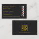 Professional barber shop business card featuring a QR code for easy booking, social media, or payment access. Designed with a clean, modern layout to help clients quickly connect and schedule appointments. Ideal for barbers, grooming studios, and salon suites. Editable text and QR destination. Clean print ready layout.