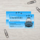 © Sunny Mars Designs. Cartão de visita da Carta Azul de Pesca - Estes cartões de visitas barcos ilustram um barco de pesca azul e branco com o céu e o oceano no fundo. Perfeito para empresas de aluguer de barcos e para serviços de fretamento de pesca ou outros serviços de fretamento de barcos.