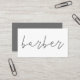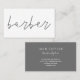 Mínimo elegante script de tipografia manual faux glitter cinza carvões e cartão de visita de estilista de barbeiro luxo branco moderno. — Adequado para freelancers, proprietários de salões de barbeiro ou funcionários.