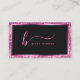 Cartão de visita de Monograma de Script Moderno com Brilho Rosa Quente de Luxo