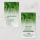 Basic Garden Service List Call to Action Lawn Care Business Card template - features front and back a decorative custom lawn image. Add your company name and list of services offered to the front. And find placeholders for your name, expertise, a simple call to action "Call for a FREE quote!" and contact details like website, email, and Facebook handle. ✨ #GreenLawnCare #GreenWhiteBrand #LawnCareServiceBranding