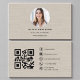 Cartão De Visita Beige Linen Photo with QR Code Social Media