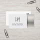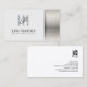 Este cartão de visita de consultor de beleza apresenta um elegante fundo damasco prateado no lado direito da carta. Sua letra monográfica aparece em uma letra elegante em um simples fundo prateado. Seu nome e título estão abaixo da letra do monograma, sobre um fundo cor esbranquiçada. Perfeito para beleza, moda, estilo, senhoras, mulheres, consultoria de moda, consultoria de beleza, consultoria de imagem, consultoria de estilo, sofisticada, designer, artística, prata, cromo, monograma, temas damask.