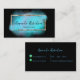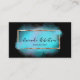 Design de cartão de visita personalizado moderno e feminino, com uma falso estrutura retangular em folha de ouro, com pinceladas de tinta de cor d'água turquesa sobre fundo preto. O texto é totalmente personalizável. Para alterá-la, use a opção Personalizar. Para obter mais alterações, como alterações na fonte, cor da fonte ou layout de texto, use a opção Editar design.