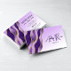 Anuncie seu negócio com essas cartões de visitas femininas e luxuosas que apresentam padrão de agitação de mármore violeta e dourado, e um fundo de gradiente branco e violeta suave. Perfeito para salões de beleza, cabeleireiros, maquiadores, estéticos, salões de unhas, spas e muito mais!