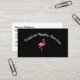 Design do modelo dos cartões de visitas do tema dos bens imobiliários da praia com imagem de um flamingo e de um modelo cor-de-rosa do nome da empresa em um estilo que legal do arco você pode substituir com seu próprio nome da empresa e usar a parte traseira do cartão para sua informação compacta.