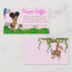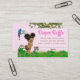 Bilhetes de rifa de fralda com tema safari girl com adorável bebê negra com cabelo afro fofo e animais do safari infantil em um fundo cor-de-rosa damasco da selva. Esses bilhetes de rifa de fralda com tema safari girl são facilmente personalizados com seu texto.