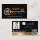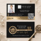 Make a bold and sophisticated statement with the Black Gold House Key Real Estate Agent Realtor Business Card. This striking design features a luxurious gold vintage key with an elegant house beautifully integrated into the top portion of the key. The front can be personalized with your name, title, and website, allowing you to showcase your brand with confidence and style. Clean typography keeps the design polished while letting the statement key remain the focal point. The reverse side continues the elegant black and gold aesthetic with a refined layout that includes space for your profile picture, brokerage logo, contact details, and a custom QR code for instant connection to your listings, website, or booking page. This thoughtful combination of classic symbolism and modern functionality ensures your card is both visually impressive and strategically effective. Perfect for real estate agents, Realtors, brokers, and luxury property specialists who want to stand out at open houses, client meetings, and networking events, this design represents more than a business card — it represents the key to your clients’ next chapter. Designed by Moodthology Papery.