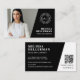 This sleek and simple business card uses white serif typography against a solid black background for a classic, elegant feel with a modern twist. The front highlights your photo, company logo, name, and title or business name in a polished layout that stays clear and professional. The back includes your contact information, a scannable QR code, and minimalist social media icons with the phrase “Connect with us!” for easy engagement. The high-contrast black and white style can be customized to fit any brand, making it a timeless choice for corporate teams, small businesses, freelancers, and consultants. Personalize yours to create a refined and stylish first impression.
