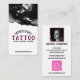 Features black modern and pink decorative text for business name, services offered and website with image on the front. Black modern text for your name, phone number, address and personal contacts with pink QR code and personal photo on the back, all on a white background color. Perfect for tattooists or other small business owners.