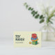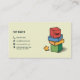 Um cartão de visita com fundo amarelo macio para um fabricante de brinquedos ou uma loja de brinquedos com uma pilha de blocos de brinquedos de madeira de cor brilhante num toque desenhado à mão. Os blocos são organizados em uma torre branca com um bloco vermelho solteiro posicionado no topo, exibindo um texto personalizável e um solteiro, uma estrela estilizada, fica perto do canto inferior. Pode ser utilizado por brinquedos de madeira de fazer artesanal, jogos de construção ou de educação, etc.