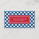 Cartão de visita com padrão de gingham azul com um centro vermelho na frente. A placa tem um lado vermelho correspondente. Esta cartão de visita de tendências é ideal para várias profissões como designer de interiores, chef, padeiro, blogueiro, etc. Personalize-o substituindo o texto do marcador de posição. Para obter mais opções, como alterar a fonte e seu tamanho/cor ou o espaçamento entre letras, clique no botão "Personalizar". *Observe que a Marca d'água do Zazzle que aparece na visualização de zoom NÃO aparecerá no produto impresso final. © Rosewood e Citrus
