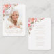 Este elegante cartão de memorial floral personalizado para funerais apresenta uma foto na frente para você mudar para o seu próprio acentuado por rosas cor-de-rosa e pêssego no canto superior esquerdo. Abaixo, lê-se "In Loving Memory" com um nome e data para personalizar no roteiro escrito à mão. A parte traseira da placa tem um poema original que pode ser deixado como está ou personalizado para uma de suas preces. Elaborado e escrito por ©Susan Coffey.