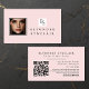Cartão De Visita Blush Pink Script Logo QR Code Photo Lashes