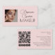 Cartão De Visita Blush Pink Script Social Icon QR Code Photo Makeup