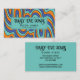 Abstrato púrpura cor-de-laranja azul-esverdeada, estilo Boho 70, cartão de visita com tipografia florescida retrô. Uma vibração do estilo 60 e 70. Adicione seu nome, empresa e cidade.