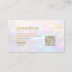 Um design na moda moderno e cartão de visita com uma paleta de cores vibrante e iridescente de pinks, púrpuras e blues moles. O design é acentuado com um boque cintilante e um brilho de ouro elegante, criando um belo e atraente efeito ocular. Os detalhes da luz acrescentam um toque de brilho e sonhos, fazer-o perfeito para profissionais criativos, designers de joias ou qualquer pessoa que busque uma identidade de marca chic e memorável.