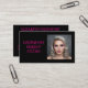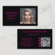 Wow your customers with this business card featuring an elegant typography design in bold black and hot pink plus a photo of your choosing. On the back personalize all your contact information and showcase your social media handles together with a QR code for your bookings or site.