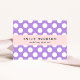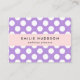 Cartões de visitas bonitos, divertidos e adoráveis com padrão de bolinhas em cor roxa e branca. Design moderno e moderno, perfeito para amantes de bolinhas.