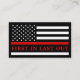 Cartões de visitas finos de combate a incêndios da linha vermelha - cruz maltese de bombeiro e design de bandeira americana em cores de bandeira de bombeiro, design angustiado. Perfeito para todos os bombeiros e bombeiros. Frente - Personalize com nome, departamento, endereço e informações de contato. Voltar... "primeiro em último lugar". COPYRIGHT © 2020 Judy Burrows, Black Dog Art - Todos Os Direitos Reservados. Bombeiro Maltês Cruz Vermelha Cartão de visita