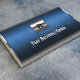 Cartão de visita de monograma de metal azul profissional
