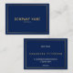 Um cartão de visita marinho ousado enquadrado por um elegante e fino efeito duplo de ouro borda pares de tipografia centrada com espaçamento generoso para uma apresentação profissional fácil de ler, ideal para pequenas empresas modernas. O layout mínimo mantém o nome da empresa proeminente na frente e deixa claros os detalhes de contato na parte de trás, oferecendo um olhar atraente, mas clássico, para promoções voltadas para o cliente. A aparência de ouro é um efeito impresso.