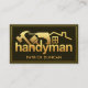 Uma moldura dourada na moda encapsula um cobrir marrom escuro que tem um design de ferramentas de mão dourada. As ferramentas podem representar alguns dos serviços que você pode oferecer. Por exemplo, o martelo pode ser para reparos domiciliários, a escova para pintura e remodelação, etc. Perto da base está o seu nome prestigioso. No verso, o mesmo design de quadro dourado é usado com um logotipo de martelo dourado que você pode usar no topo. Seguem-se o seu nome prestigiado e os dados de contato. Todas as letras estão em ouro falso. Um cobrir profissional de excelente para temas de pessoal, construção e construção.