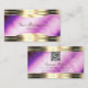 Cartão De Visita Bordas Douradas de mármore roxa vibrante com códig