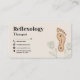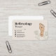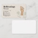 A professional business card for a reflexology practice featuring a clean, calming layout with soft earth tones. A subtle illustration of a foot, embellished with pressure point diagrams and delicate botanical elements, adorns the right side of the card. It could be used for a reflexologist, or any wellness activities such as massage, foot care, acupuncture, shiatsu, pedicure, podiatrist, acupressure.