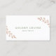 Cartões de visitas personalizados com elegantes folhas de rosa-ouro desenhadas à mão sobre design de layout moderno e limpo. Perfeito para floristas, compradas cosméticas orgânicas e muito mais. Escolha entre documentos padrão, de assinatura ou premium.