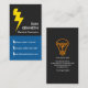 Em um cobrir branco, no topo está o logotipo de uma lâmpada amarela de um eletricista, seguido do seu prestigioso nome, dos detalhes de contato e do slogan para anunciar seus serviços.