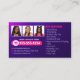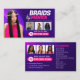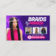 Promova seus serviços de corda e peruca com este na moda e Modelo de cartão de negócios profissional! Mostre sua experiência em tranças de caixa, tranças sem sabores, fazer de peruca, e muito mais na frente. A parte traseira apresenta um design ousado e um espaço amplo para seus detalhes de contato e marcas. Personalize facilmente o texto e as fotos. ****NOTA: Obtenha resultados ideais usando uma foto PNG. Se tiver dificuldades, sinta-se à vontade para me contactar; Posso ajudá-lo a tirar a sua foto e fornecer uma versão PNG para o seu uso.***