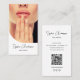 Faça uma impressão duradoura com esta Cartão de visita de artista de unhas modernas. Possui espaço para sua foto personalizada, tipografia elegante de script, um código QR para reserva ou portfólio e ícones substituíveis de mídia social para corresponder à sua marca. Perfeito por criar uma aparência chic e profissional que os clientes se lembrarão! Totalmente personalizável e ideal para técnicos de unhas, cabeleireiros, maquiadores e profissionais de beleza.