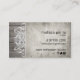 Este cartão de visita do sharp caracteriza uma folha de prova filigrana do branco translúcido e um pergaminho envelhecido sobre um fundo cinzento rústico do woodgrain. Use "personalizam-no" botão para personalizar com seu próprio texto. Disponível em 4 cores de madeira da mancha. Os convites do casamento, salvar a data convidam, menus do comensal, cartões da resposta de RSVP, etiquetas, obrigado cartões e mais igualmente disponível neste design. Para perguntas ou pedidos feitos sob encomenda, envie-me por correio electrónico: cheryl@cheryldanielsart.com. Design original "filigrana" de madeira rústico pelo © 2014 de Cheryl Daniels.
